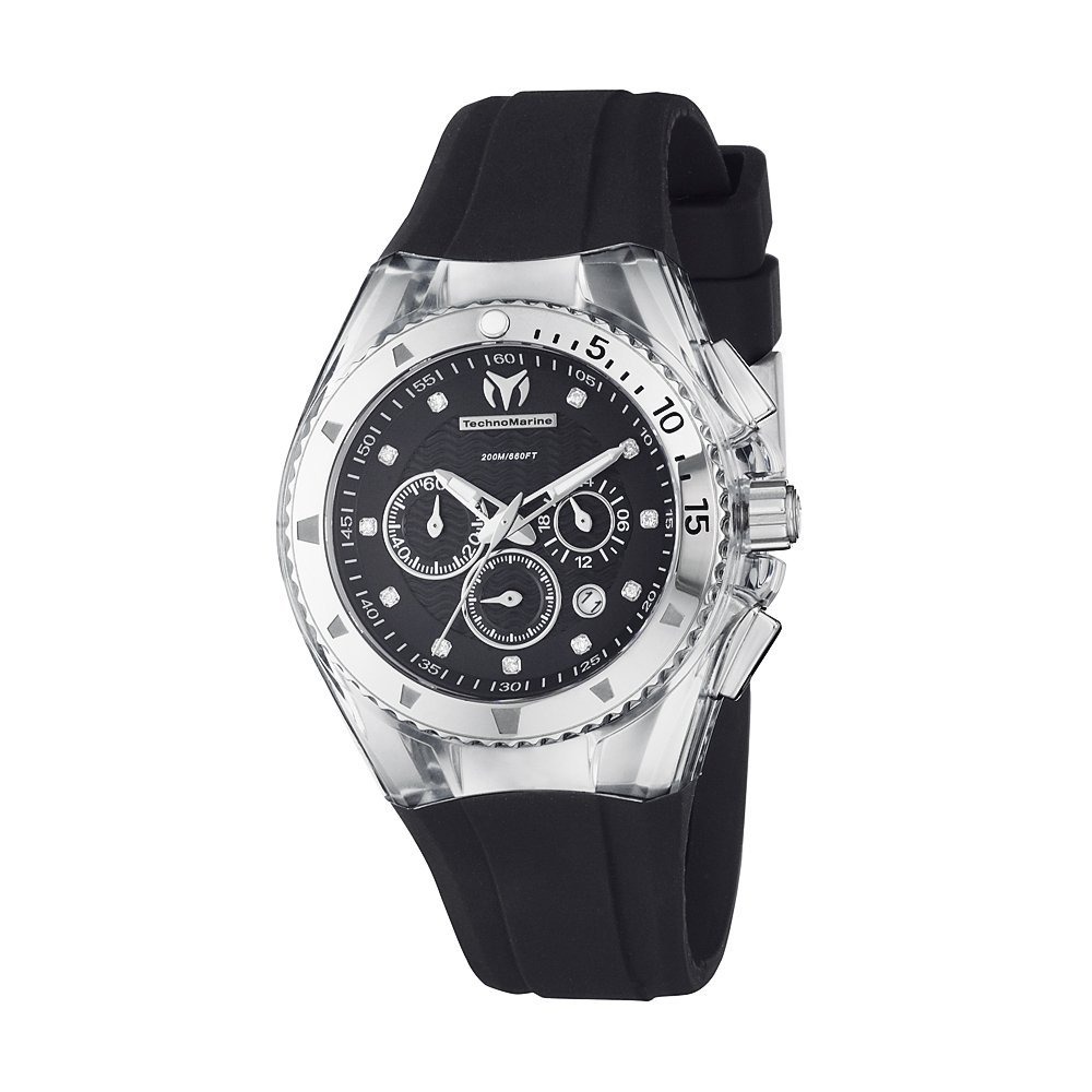 Seconds, date, chrono, 24H. 200m water resistance. Sapphire with anti-reflective treatment.