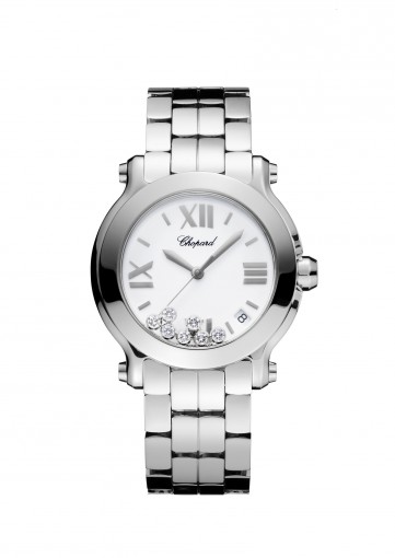Hours and minutes, seconds, date. 7 jewels. 30m water resistance. 0.39ct of diamonds. Mobile diamonds. Colored stones.