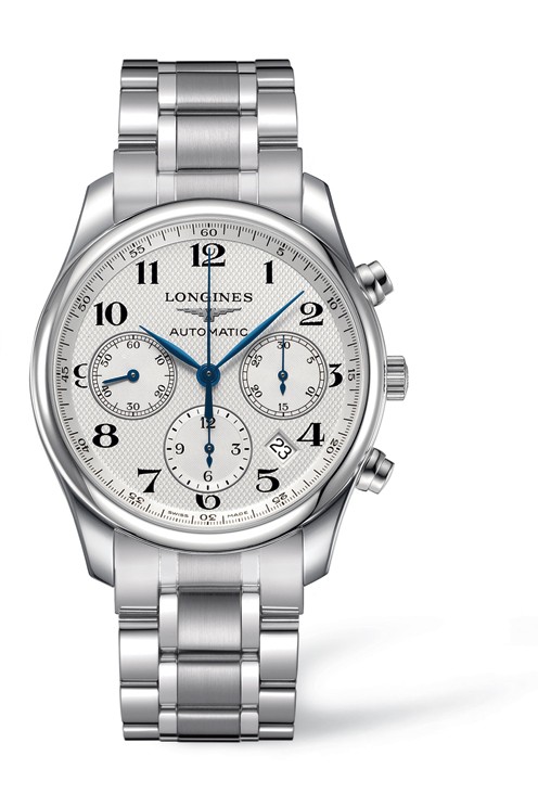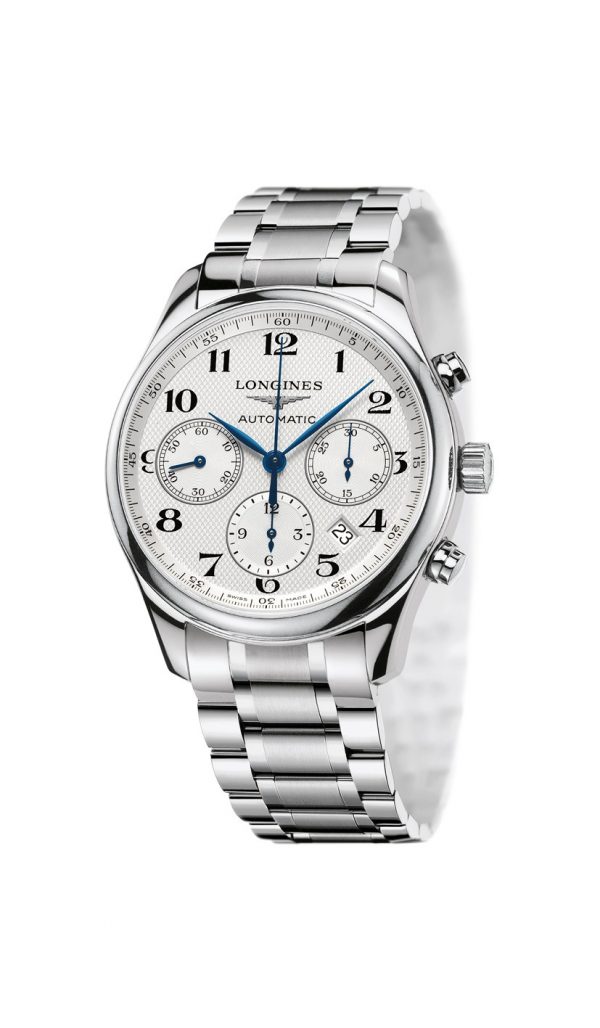 Hours, minutes, central 60 seconds chronograph hand, small seconds at 3 o’clock, 30 minute counter at 9 o’clock, hour counter at 6 o’clock, and date.
